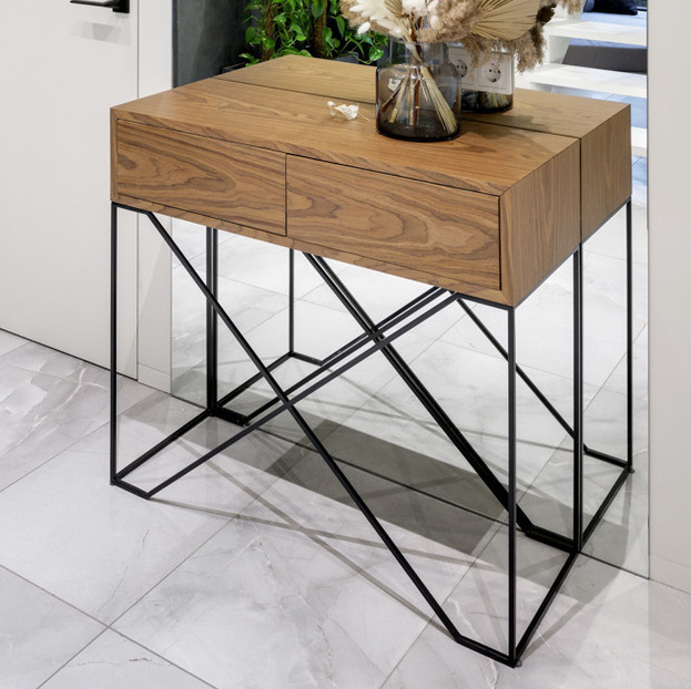 Стильний дизайнерський консольний стіл з двома висувними ящиками.