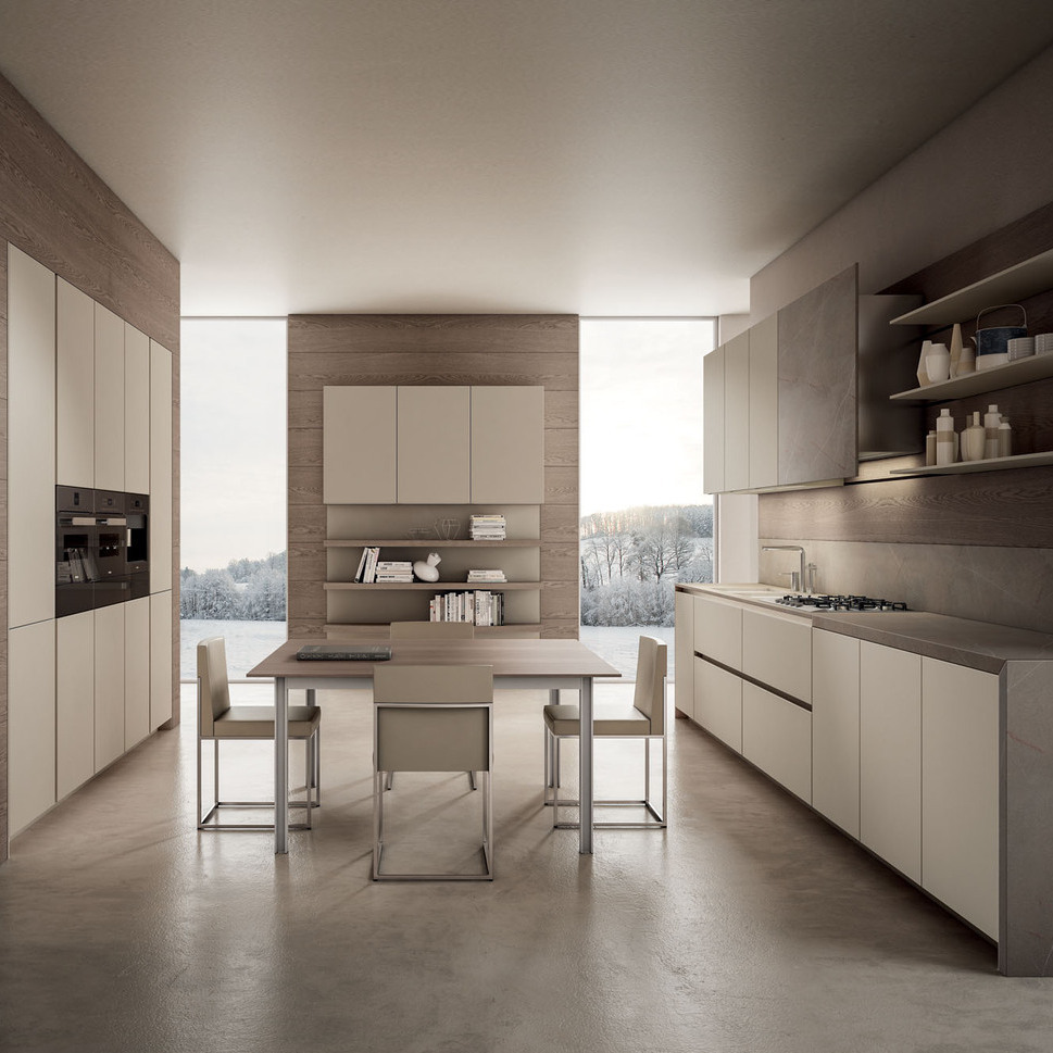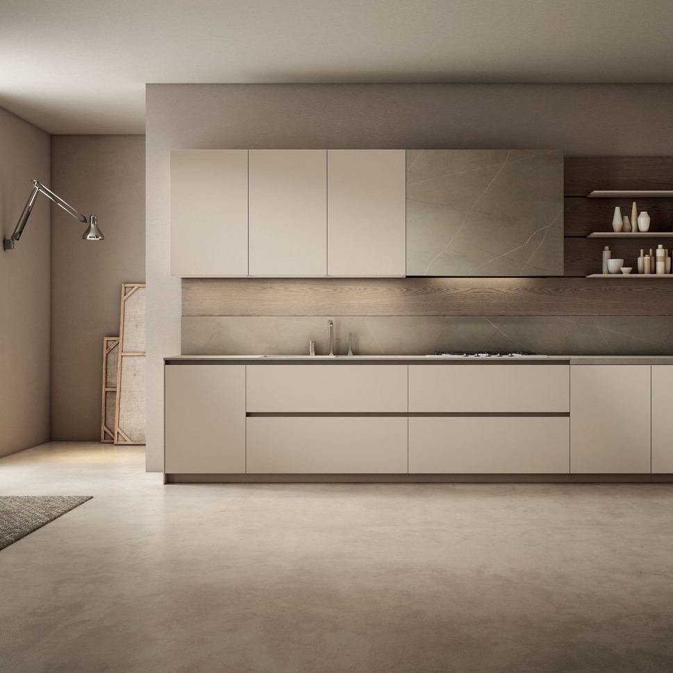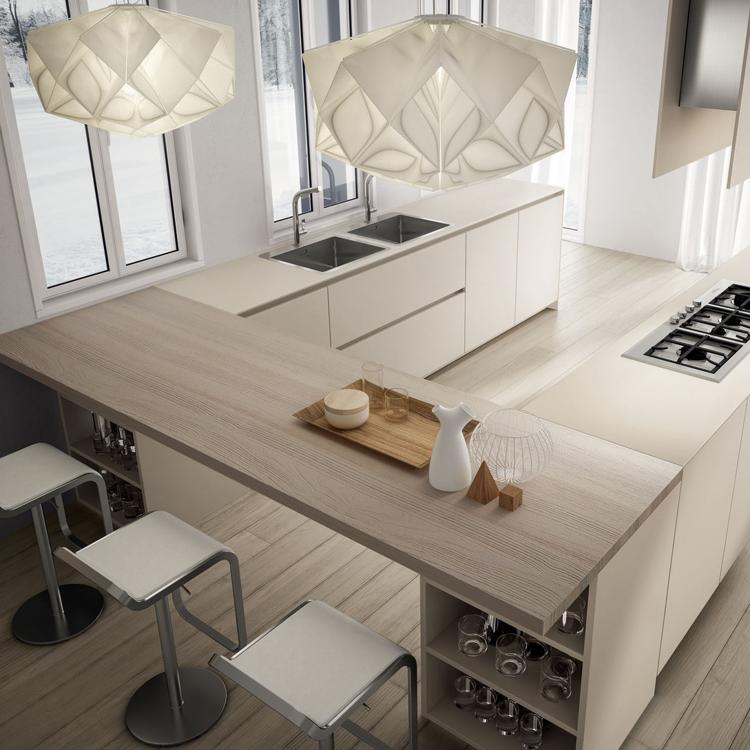 Вартість формується за рахунок матеріалу виконання кухні (ДСП, МДФ, лак, дерево, скло), наповнення, кухонної фурнітури (системи відкривання і висування), розмірів шаф (по висоті і глибині).